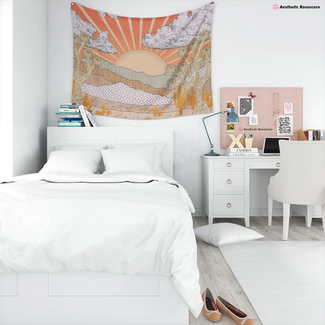 Bring aesthetic style to your room with this unique Aesthetic Mountain Sunset Tapestry. This beautiful piece if artwork is just perfect for any vintage, art hoe or cottagecore aesthetic style lover!