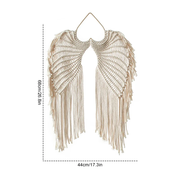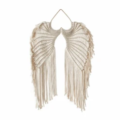 Elevate your space with the Angel Wings Hanging Wall Decor, expertly crafted in macrame for a delicate yet striking aesthetic. This piece adds texture and a serene, ethereal touch to any room, making it ideal for enhancing your interior with subtle artistry. Perfect for those seeking a refined, handcrafted accent that blends seamlessly with modern and bohemian styles.