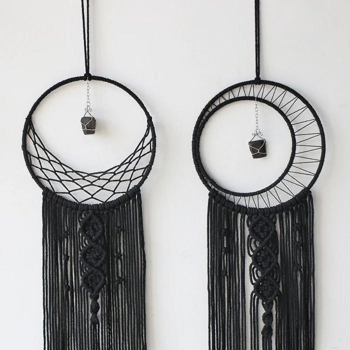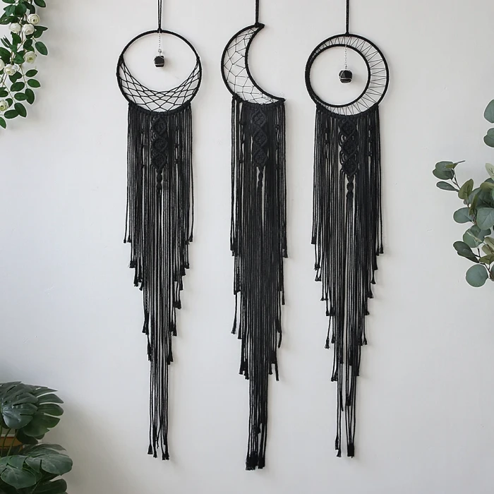 Catch your dreams with a touch of mystery and style with our Black Moon Dream Catcher. Perfect for adding a touch of beauty to any aesthetic room. Say goodbye to nightmares and hello to a peaceful and stylish slumber.