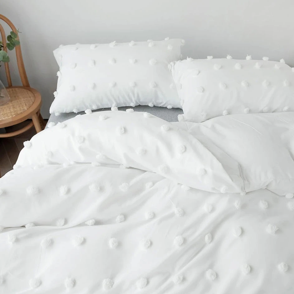 Upgrade your bedroom look with this aesthetic Boho Style Duvet Set. Beautiful bedding set with attached pom poms will fit perfectly any aesthetic boho, cottagecore or vintage style bedroom. Â