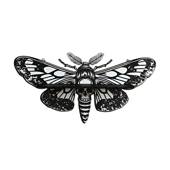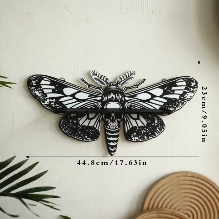 Decorate your space with a touch of whimsy with our Death Moth Wall Shelf. This unique piece not only adds aesthetic appeal to any room, but also provides a functional place to store your belongings. Embrace the uncommon and make a statement with this quirky wall shelf.