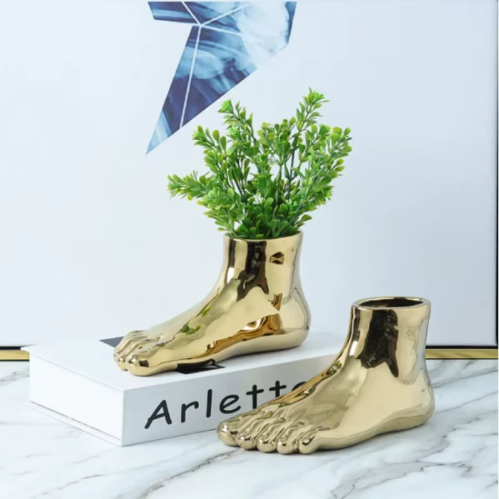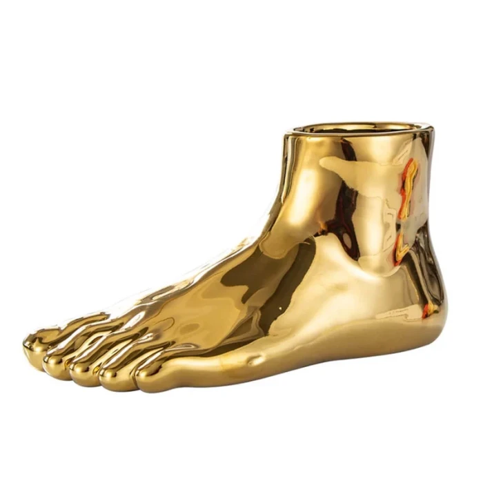 Add some sole to your space with the Foot Shaped Vase. This fun and quirky vase will add a unique touch to your room decor. Perfect for adding a playful element to any space, while also serving as a functional vase for your flowers. Step up your decor game with this foot-shaped vase!