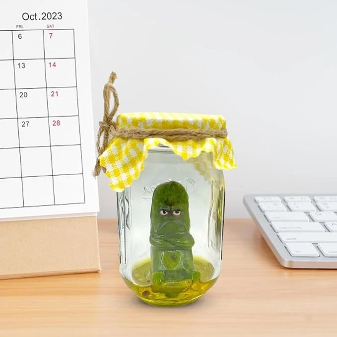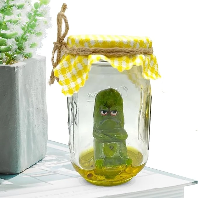 Get a kick out of your room with our Grumpy Pickle In A Jar. This quirky addition will add a touch of humor to your decor. Perfect for foodies and those with a humorous side. (Note: May cause a few chuckles.)