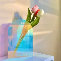 Holographic Rainbow Vase. Perfect for adding aesthetic vibe to your room! Unique design is sure to grab everyone attention. A must have for any aesthetic style lover!