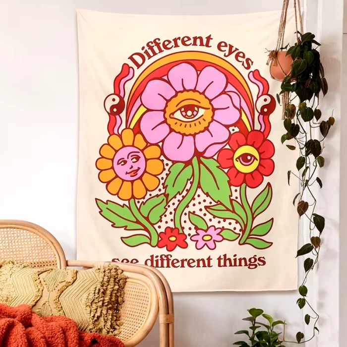 Add some indie charm to your space with the Indie Flower Tapestry. This unique piece will not only serve as a beautiful decor for your aesthetic room, but also add a touch of whimsy to your space. Bring out your free spirit with this funky tapestry.