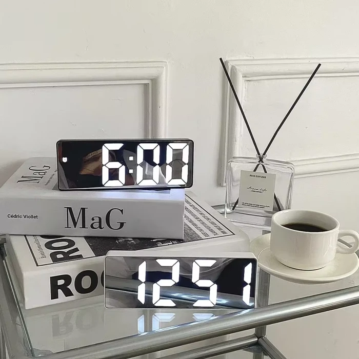 Transform your room into a stylish and functional space with our Mirror Screen Alarm Clock. Not only does it serve as a sleek mirror for getting ready, but it also functions as an easy-to-use alarm clock. Say goodbye to boring alarm clocks and hello to aesthetic room decor!