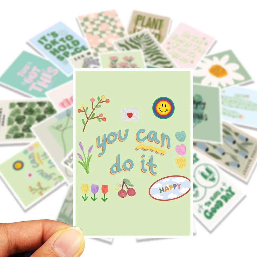 Decorate your aesthetic room by using our unique Motivational Quote Collage Kit for your wall. We have prepared for you collection of 25 cards in colorful aesthetic theme. Perfect for adding aesthetic tone to your room! Use it as a wall decor or a sticker on your laptop, window, furniture etc.Â