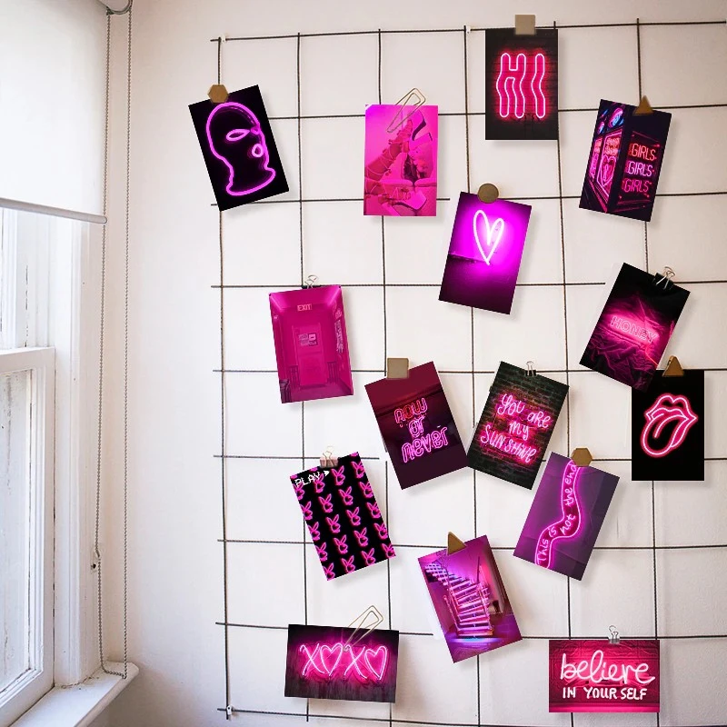 Decorate your aesthetic room by using our unique Neon Pink Collage Kit for your wall. We have prepared for you collection of 50 cards in neon pink theme. Perfect for adding pink aesthetic vibes to your room!