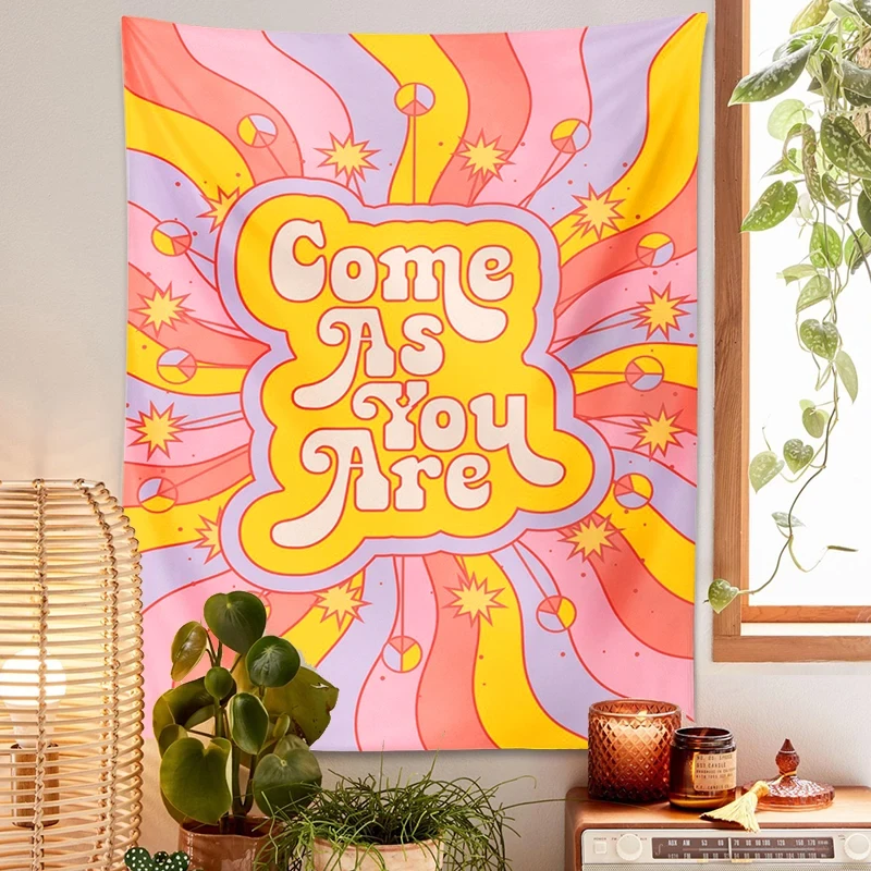 Let the Retro Vibes Pastel Tapestry take you back to the groovy 70s. With its rainbow design and retro quote, this tapestry is perfect for adding a touch of fun and nostalgia to any aesthetic room. Let the vibrant colors and playful design bring some good vibes into your space.