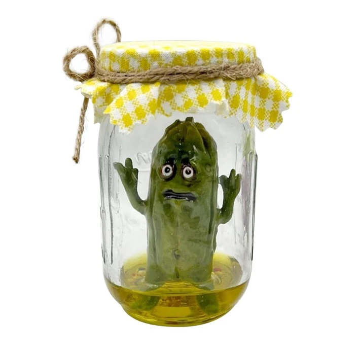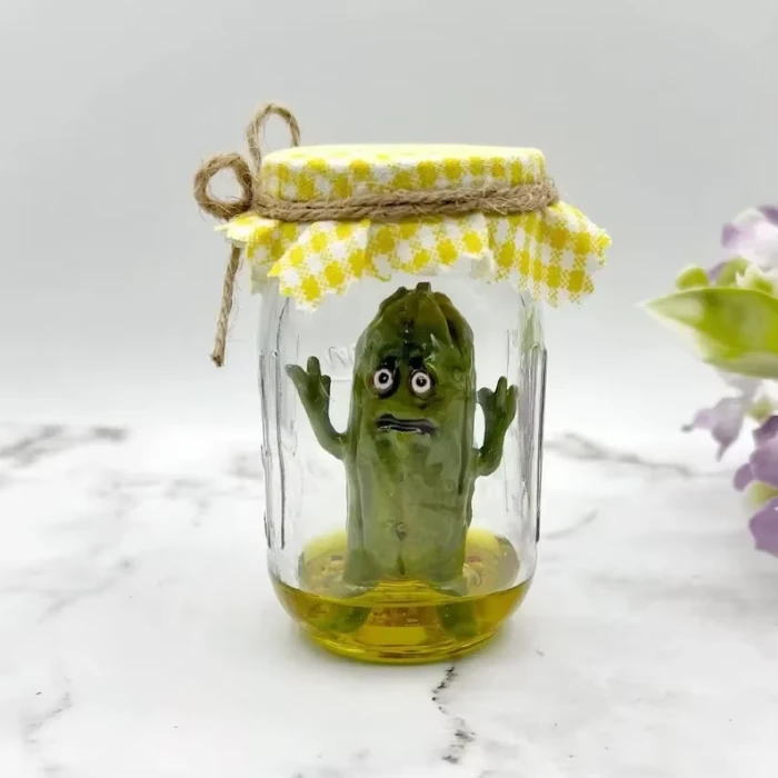 Get ready to add some quirky aesthetic to your room with the Scared Pickle In A Jar! This unique room decor piece will not only add a touch of playfulness to your space, but it also doubles as a convenient storage jar. Don’t be afraid to embrace the pickle life (and your fears) with this fun and functional product!