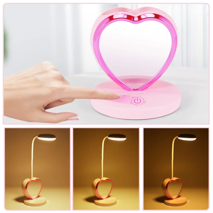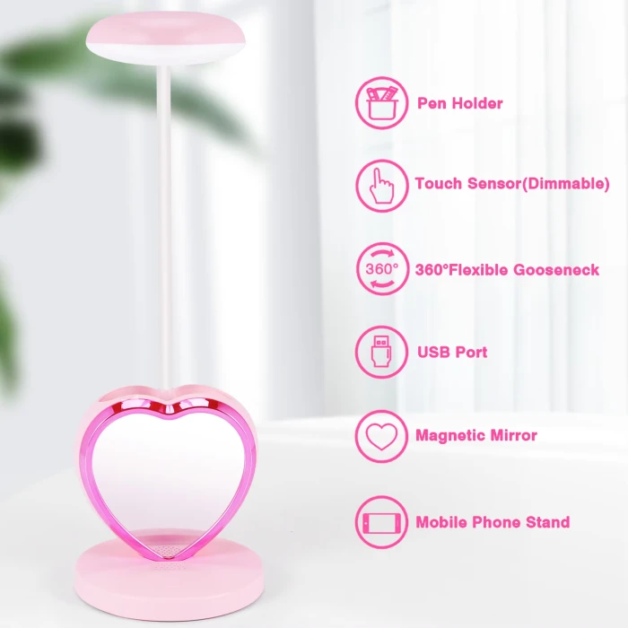 Brighten up your desk with our Soft Girl Desk Lamp! This adorable pink lamp comes with a heart-shaped mirror and a convenient pen holder, making it the perfect addition to any aesthetic room decor. Stay organized and stylish at the same time!