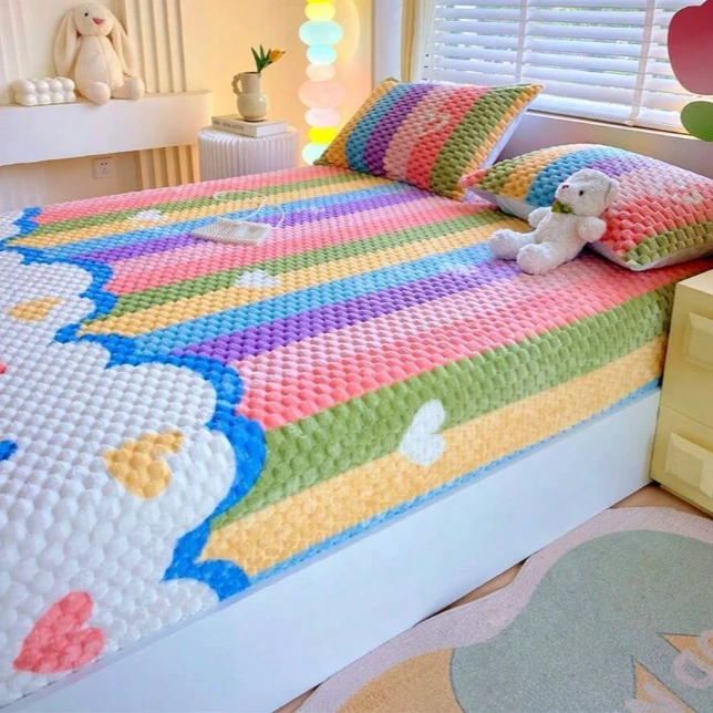 Add a touch of color to your bedroom with our Soft Rainbow Bed Cover. Made from soft materials, it will not only add aesthetic appeal to your room decor, but also provide ultimate comfort for a good night’s sleep. Don’t sleep on this stylish and cozy addition to your bedding!