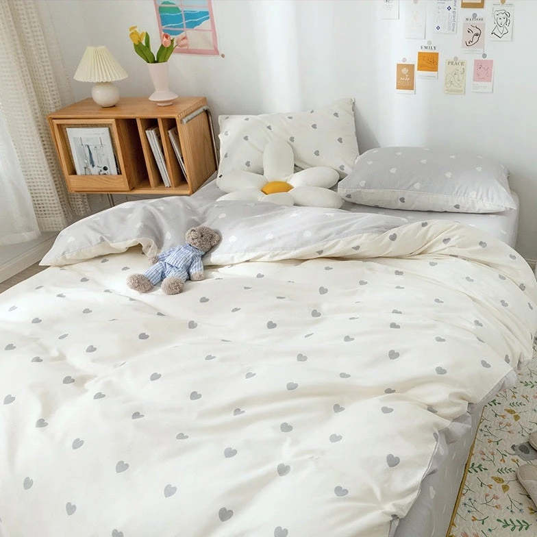 Upgrade your bedroom look with this aesthetic Soft Vibes Duvet Set. Beautiful love hearts design and light color palette will fit perfectly any soft girl aesthetic room.Â