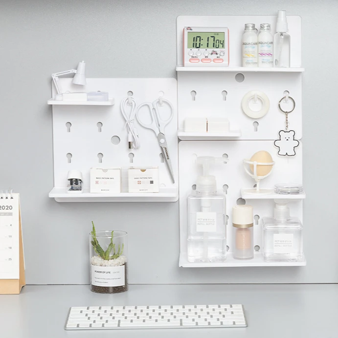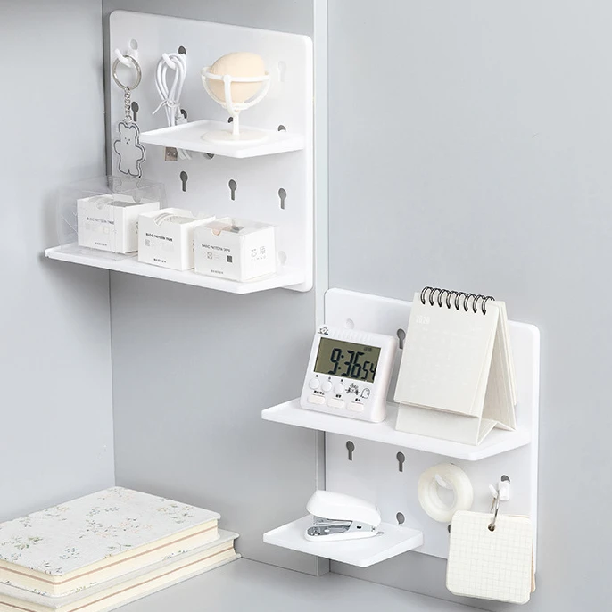 Don’t drill, just stick with the Sticky Wall Organizer! Our punch-free plastic hole board is the perfect way to hang shelves and racks without making a hole-y mess. Get your study space organized in no time with this wall shelf rack holder!