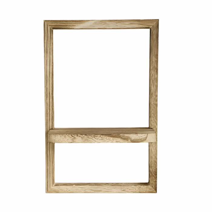 Add a touch of rustic charm to your space with our Wooden Framed Shelf. Perfect for organizing and displaying your favorite trinkets and treasures, this shelf also doubles as an aesthetic room decor piece. The only question is, how will you style it?